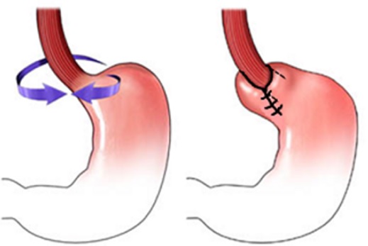 Фундопликация — оперативное вмешательство, проводимое с целью восстановления естественной функции сфинктера пищевода. Применяется при неэффективности консервативного лечения, а также в экстренных случаях при ущемлении грыжи. При гастроэзофагеальном рефлюксе происходит заброс смеси содержимого желудка в пищевод. Данный вид оперативного вмешательства помогает устранить этот дефект.